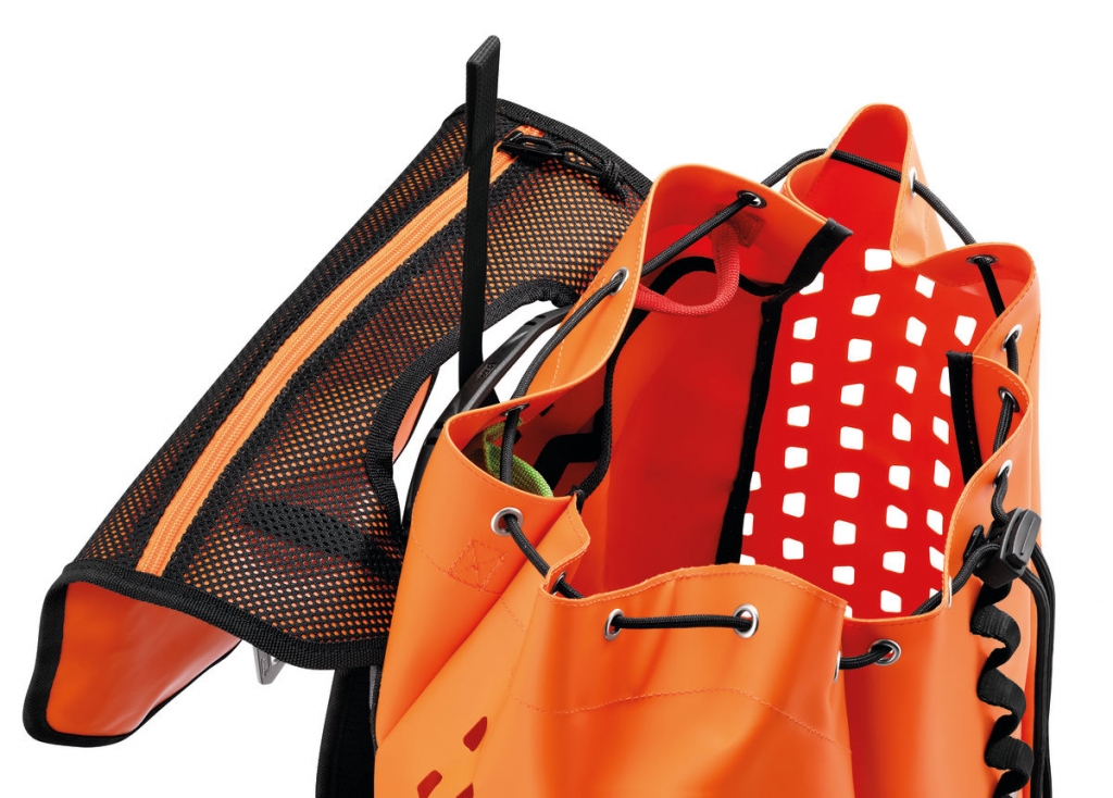 - compartiment supérieur avec une face avant rigide permettant de sortir et ranger facilement la corde. Il peut être utilisé avec un sac à corde YARA GUIDE 25,
